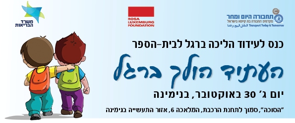 כנס העתיד הולך ברגלכנס "העתיד הולך ברגל" שהתקיים בבנימינה, אף הוא בשבוע שעבר, עסק בעידוד ההליכה ברגל לבתי הספר. המומחים שהרצו בכנס דיברו על חשיבות ההליכה לבריאות ילדינו, על תכנון עירוני שיהיה ידידותי ובטוח יותר לכולנו ועל הליכה כמרכיב מרכזי בתחבורה בת קיימא. לימור יקיר רוטיץ' הציגה את הפרוייקט פרי יוזמתה לעידוד ההליכה ברגל לביה"ס אמירים בבנימינה, כדוגמא לערכו של פרוייקט מסוג מזה.