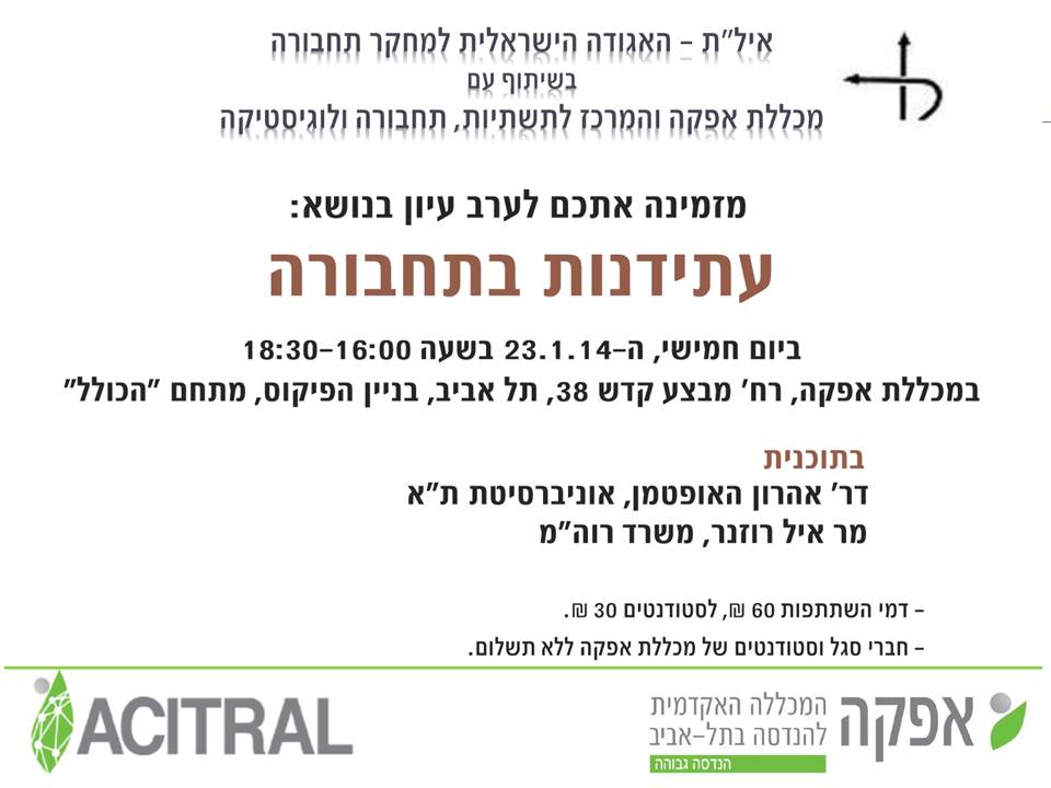 עתידנות בתחבורה - ערב עיון של אגודת איל"ת בשיתוף עם מכללת אפקה