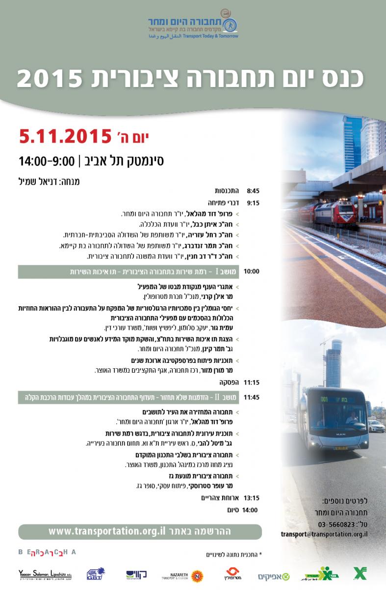 כנס יום תחבורה ציבורית 2015 ייערך כמתוכנן ביום חמישי הקרוב, 5.11.2015, בסינמטק תל אביב, בין השעות 9:00-14:00