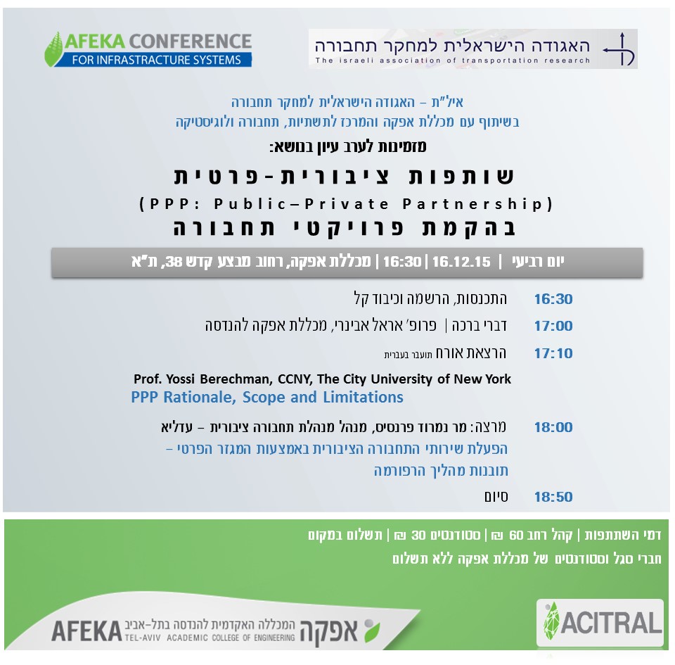 ערב עיון בנושא שותפות ציבורית-פרטית בפרויקטי תחבורה: