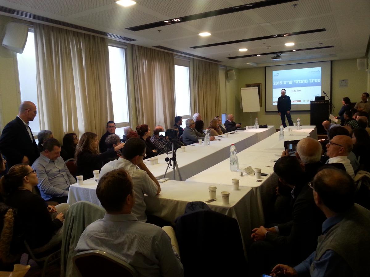 תודה לכל המשתתפים בסמינר מהנדסי ערים 2015!"סמינר מהנדסי ערים 2015" נערך ע"י תחבורה היום ומחר בשיתוף איגוד מהנדסי הערים והתמקד השנה במדדי איכות השירות בתחבורה הציבורית ובאופן שבו הרשויות המקומיות יכולות להשפיע. הרצאת הפתיחה ניתנה ע"י מתכנן התחבורה ד"ר רוברט אסחאק, שתיאר את מצב התחבורה הציבורית בחיפה, והגדיר את תפקיד הרשות המקומית בקידום תח"צ. רונן כהן, מנהל מחלקת תכנון תחבורה ציבורית בחברת נת"ע הציג תובנות של עבודה רבת שנים מול רשויות מקומיות בקידום פרויקטים של BRT, ופירט את החסמים של קידום פרויקטים של BRT ברשויות המקומיות והדרכים לפיתרון. אחריו סיפר מר פנחס גרשון, מהנדס תנועה בחברת אגד, על הצורך של הרשויות להירתם לטובת מפעילי התחבורה הציבורית ולדאוג בין השאר למסופים. גב' תמר קינן, מנהלת "תחבורה היום ומחר" הציגה מדדים לבחינת רמת השירות של התחבורה הציבורית מנקודת מבט מערכתית ועירונית, ומר רונן רגב כביר, מנכ"ל "אמון הציבור", ניתח את מערך התלונות המגיעות ל"אמון הציבור" בנושא תחבורה ציבורית. ראש העיר רחובות, מר רחמים מלול, הציג את הקשיים שבקידום BRT מנקודת מבט העירייה. אנו מצטרפים לדרישתו של ראש העיר לבטל את גדר ההפרדה המתוכננת בליבו של רחוב הרצל , ולאפשר לרחובותים להנות ממרכז עיר שוקק ופתוח, כמו בערים רבות באירופה. בסיום החלק הראשון של הסמינר התנהל דיון בהנחייתו של אמיתי הר לב מנכ"ל חברת "מודוס". בחלקו השני של הסמינר התארחנו במרכז לבקרת רמזורים במנהל ההנדסה של עיריית תל אביב-יפו. גב' עדה שוורץ הציגה את מערכת בקרת הרמזורים שתורמת לאחרונה לשיפור מעמד הולכי הרגל ע"י "גלים ירוקים" בצמתים עמוסים או ע"י שינוי תדירות במהלך היום בהתאם לשעות העומס. בסיום הביקור תיארה ד"ר איילת גלצור מהטכניון את מערכת "אביבים" לקידום תחבורה ירוקה ולמציאת פתרונות ירוקים לתנועה עירונית. תודה לכל המרצים ולמנחה הדיון, שהעבירו את המסרים בצורה מרתקת ומועילה.