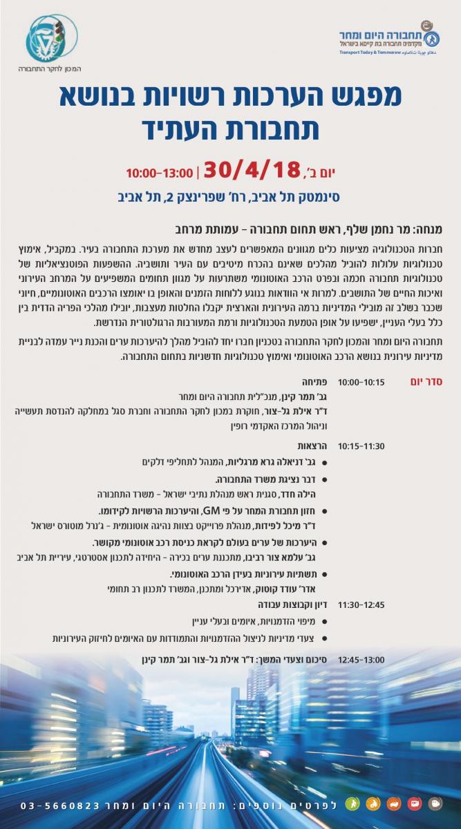 דיון בנושא הערכות העריםלתחבורת העתיד: 30 באפריל בין השעות 10:00-13:00