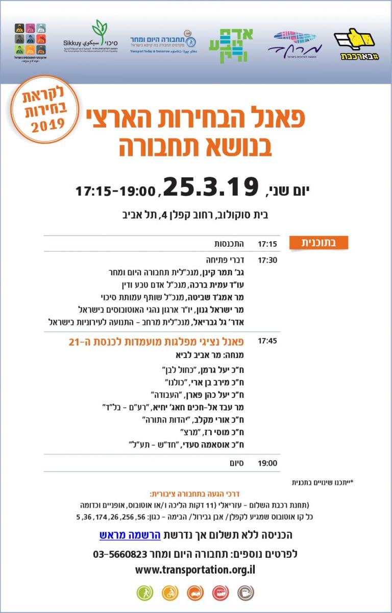 תחבורה היום ומחר שמחה להזמין אתכם לפאנל הבחירות הארצי בנושא תחבורה,