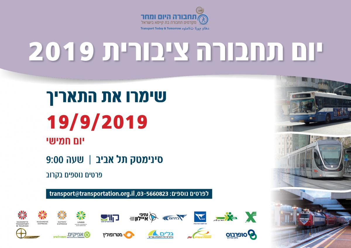 שמרו את התאריך לכנס יום תחבורה ציבורית 2019!יום ה', 19 בספטמבר 2019, סינמטק תל אביב, 9:00תחבורה היום ומחר שמחים להזמינכם לכנס המרכזי של יום תחבורה ציבורית!בקרוב יפורסם סדר היום המפורט, הישארו מעודכנים, ניתן כבר להירשם, אנא רשמו ביומנכם. |