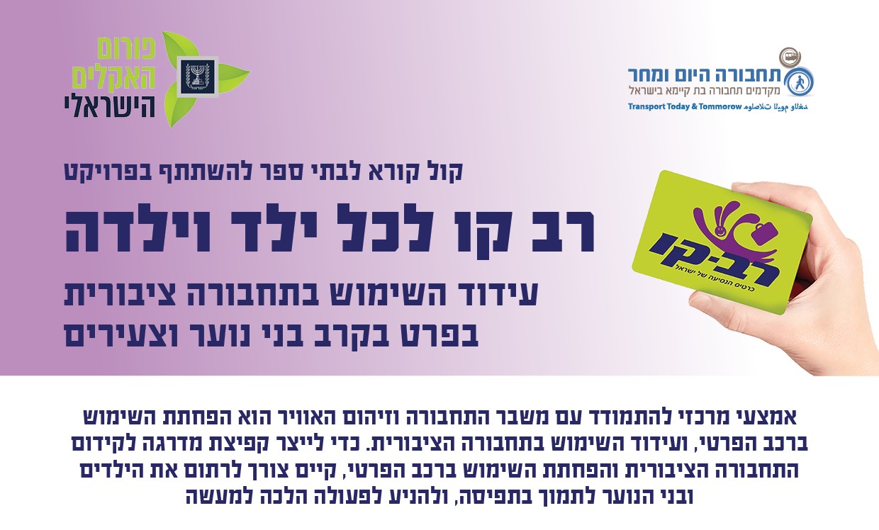 רב קו לכל ילד - קול קורא לבתי ספר להשתתף בפרוייקט