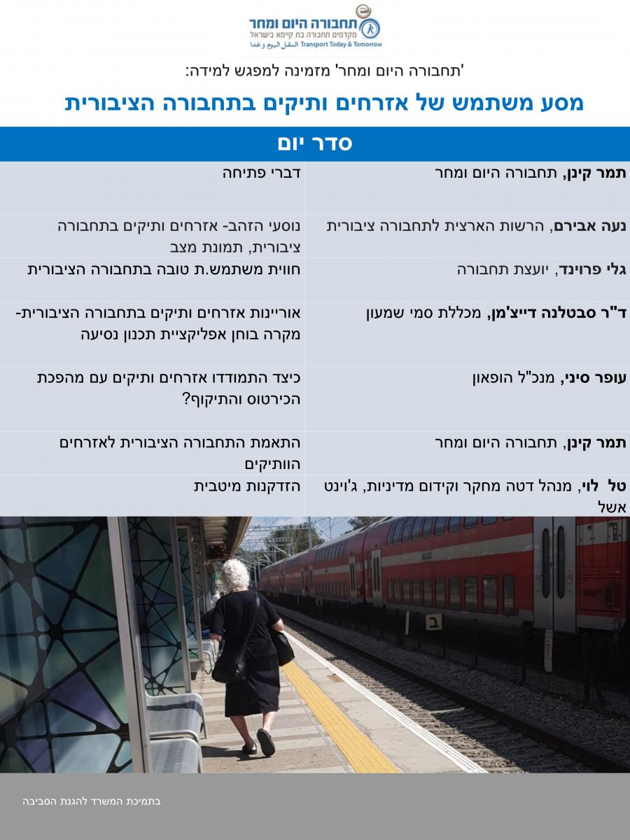 המפגש יעסוק באופן בו תחבורה ציבורית תומכת בהזדקנות מיטבית.