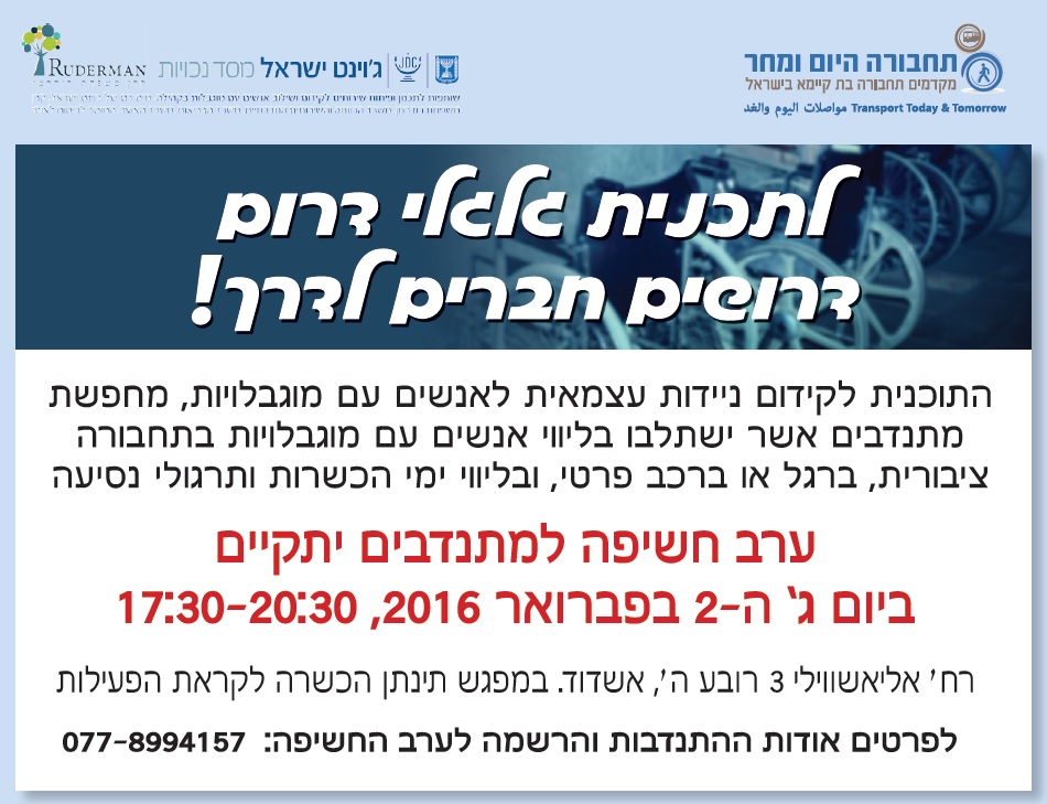 בואו להכיר את עולמם של אנשים עם מוגבלויות, להבין מה החסמים העומדים בפניהם בדרך לניידות עצמאית ולשמוע איך ניתן להשתלב בעשייה בתכנית כ"חברים לדרך".
