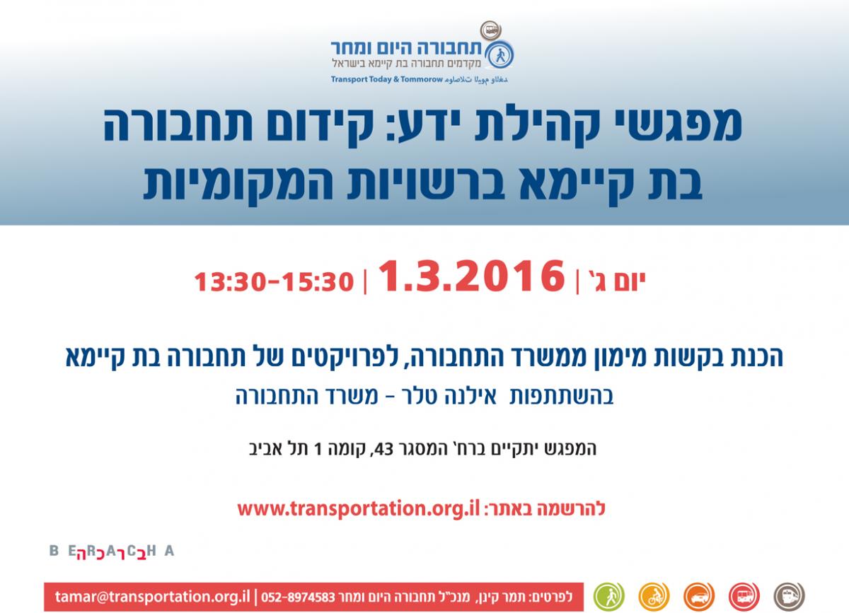 כנס/יום עיון: מפגש קהילת ידע: הכנת בקשות מימון לפרויקטים של תחבורה בת קיימא