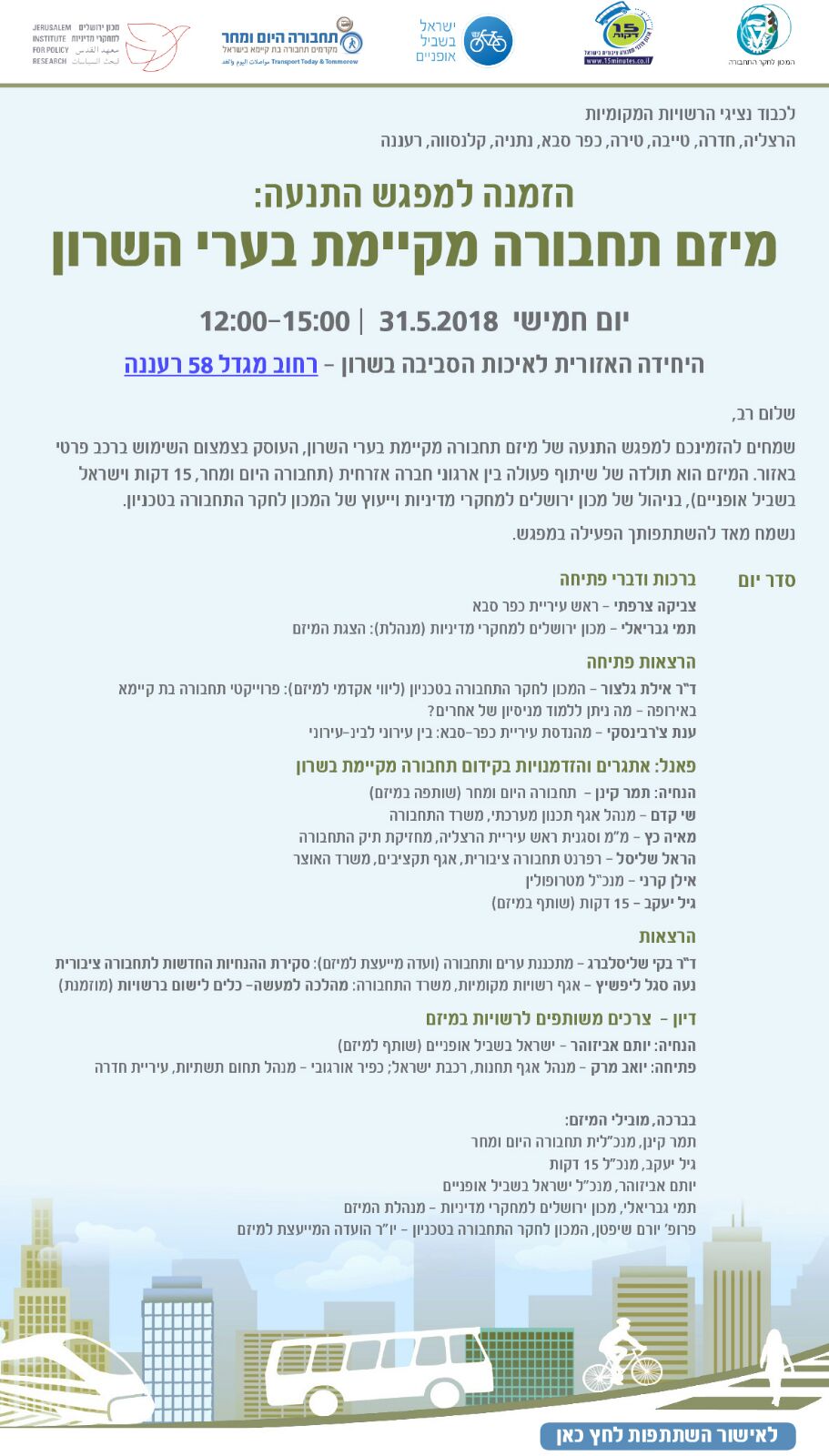 כנס/יום עיון: מפגש התנעה: מיזם תחבורה מקיימת בשרון