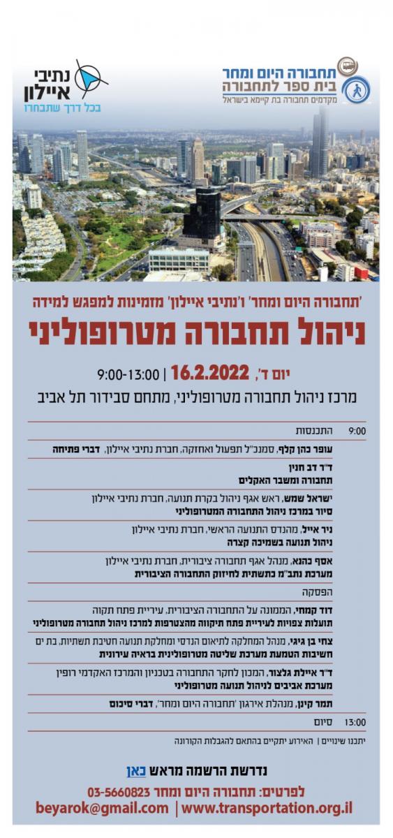 תחבורה היום ומחר - הארגון הישראלי לתחבורה בת קימא (ע"ר), טלפון 03-5660823, דואר אלקטרוני transport@transportation.org.il | מפת האתר | כניסה לרשומים