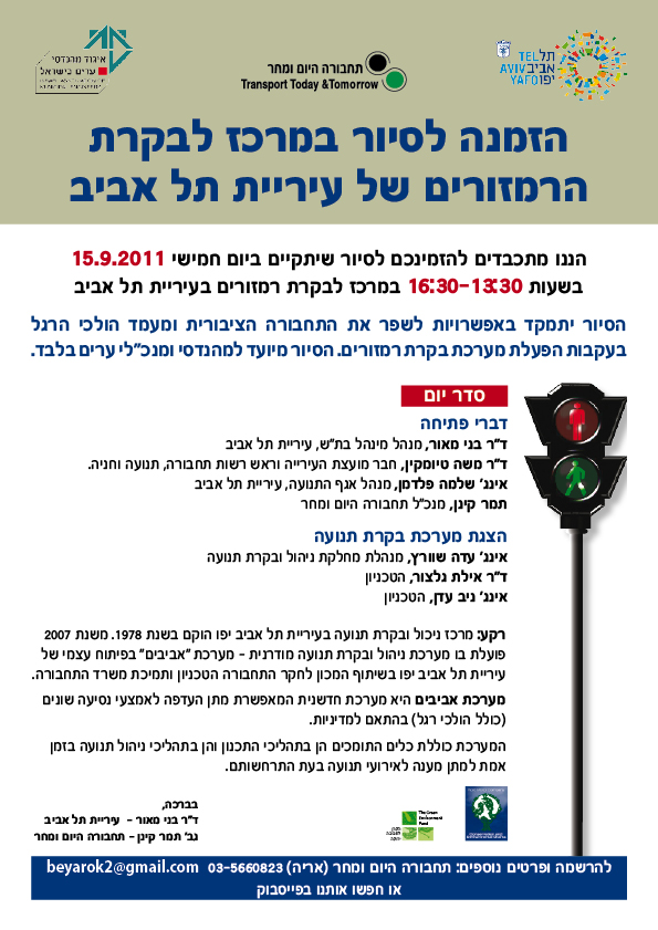 רקע: מרכז ניהול ובקרת תנועה בעיריית תל אביב יפו הוקם בשנת 1978. משנת 2007 פועלת בו מערכת ניהול ובקרת תנועה מודרנית – מערכת "אביבים" בפיתוח עצמי של עיריית תל אביב יפו בשיתוף המכון לחקר התחבורה הטכניון ותמיכת משרד התחבורה.