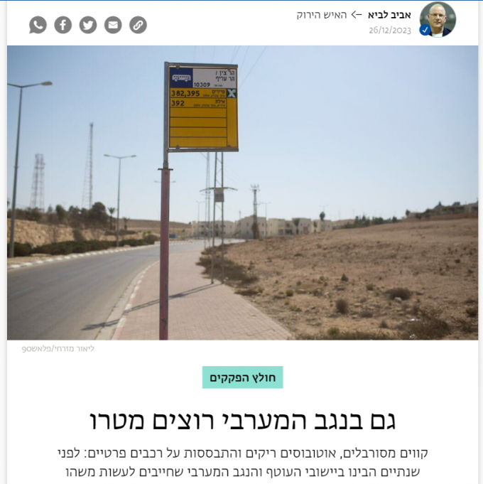 חולץ הפקקים: גם בנגב המערבי רוצים מטרו